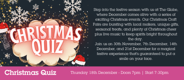 And don’t miss our range of festive drinks, available all month in our cosy café area—because at The Globe, we truly love Christmas, and we want you to enjoy every moment of it with us.